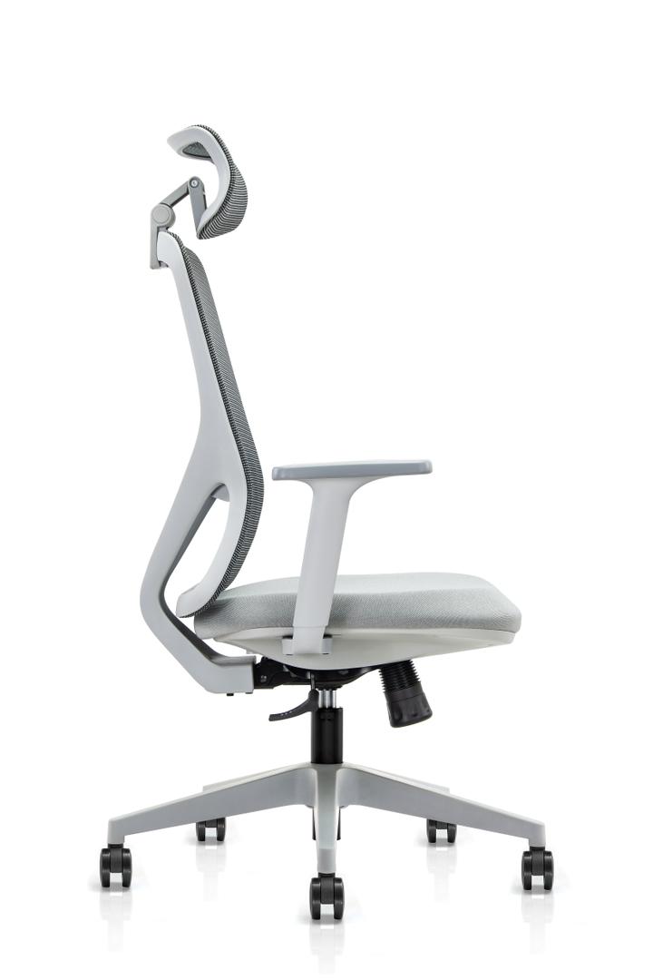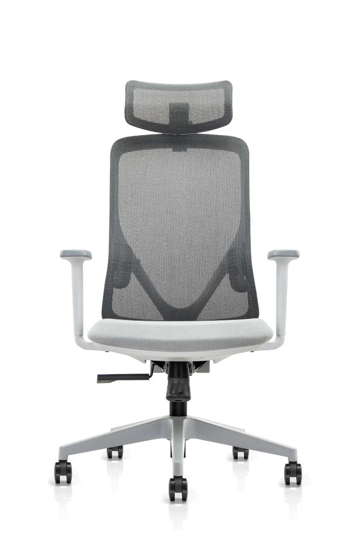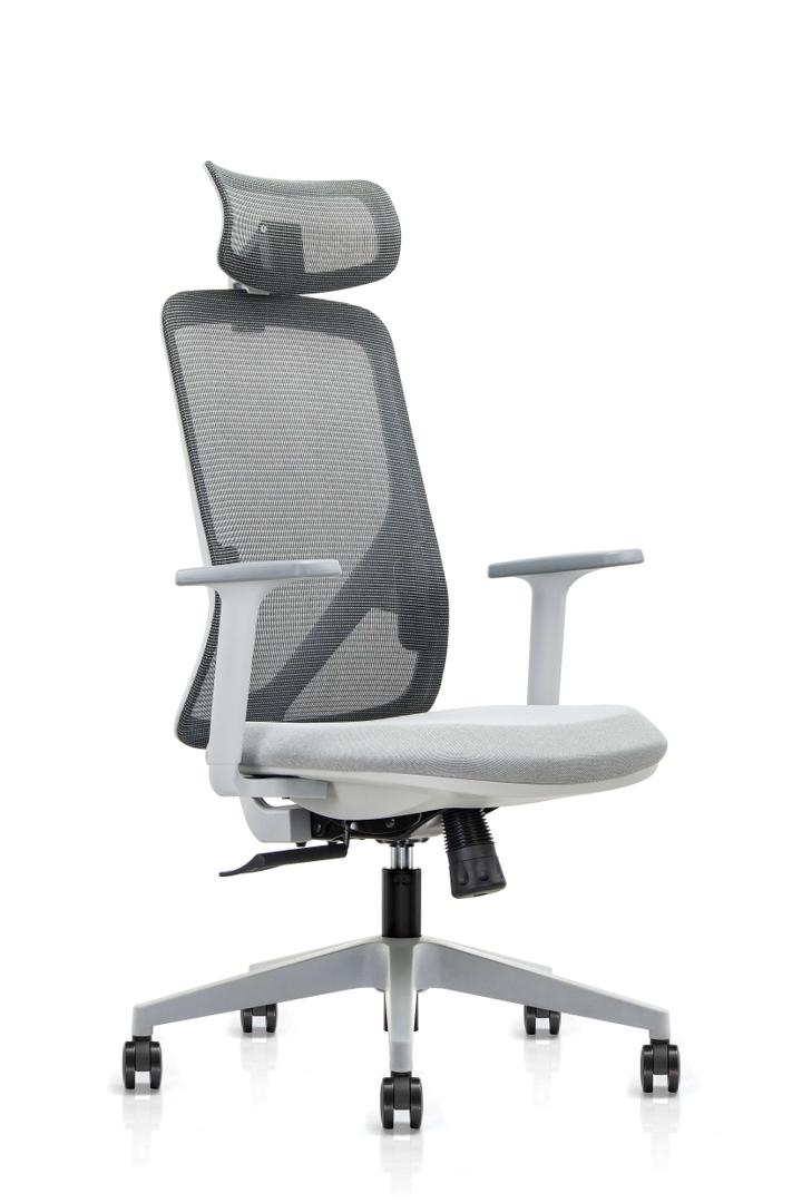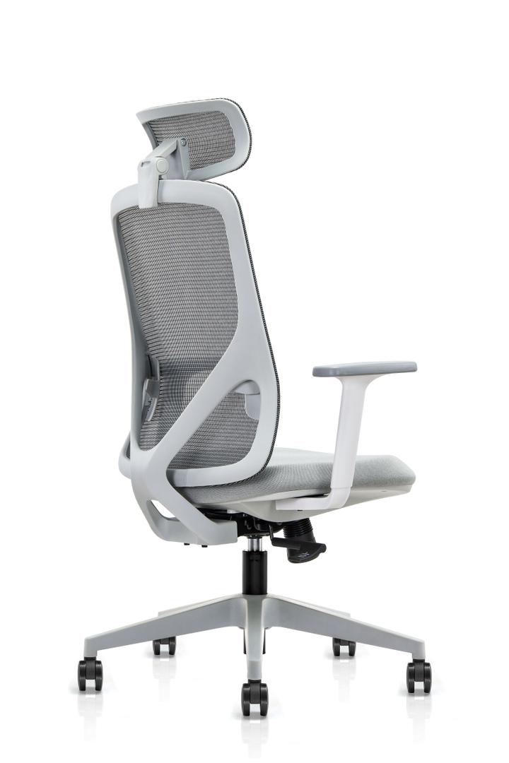 Aficuir-F12p-Mesh, Chair President Backrest In Mesh Grey With Headrest, Fabric Seat, Fixed Armrests, Gray Color, Synchronous Mechanism On Nylon Base