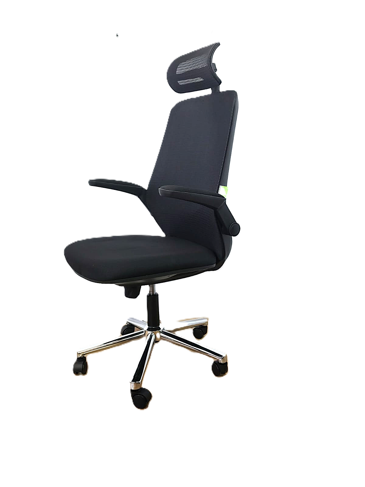 Aficuir-F15p-Mesh, Chair President Backrest In Mesh Black With Headrest, Fabric Seat, Folding Armrests, Black Color, Synchronous Mechanism On Chromed Base