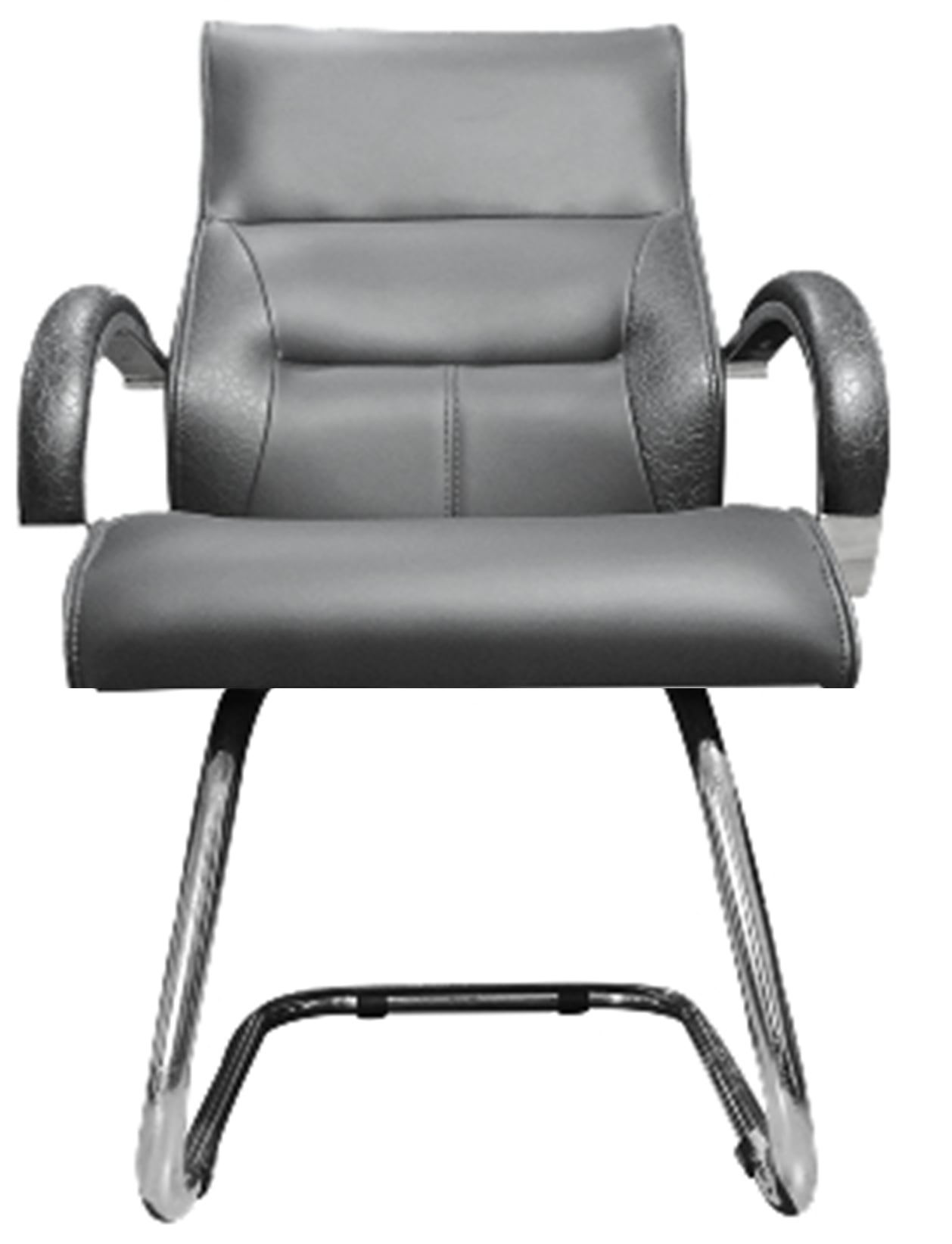 SENATOR-LUX-L-DSM VISITOR CHAIR IN SEMI BLACK LEATHER WITH WIDE HEADREST, PU-COATED CHROMED ARMRESTS, LUGE CHROMED METAL FIXED STRUCTURE